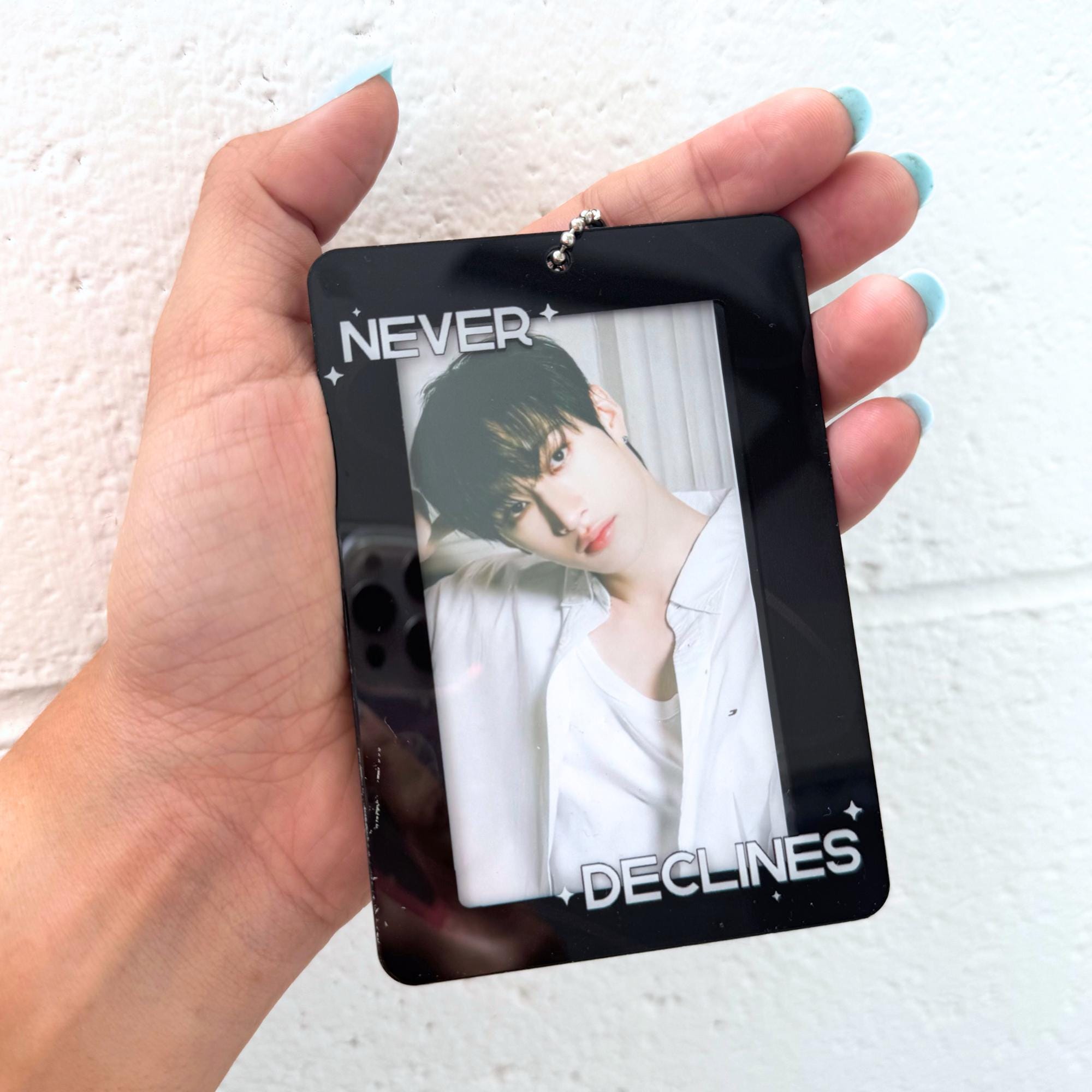 This item includes the acrylic photocard holder and ball chain. It does not include the photocard inside.