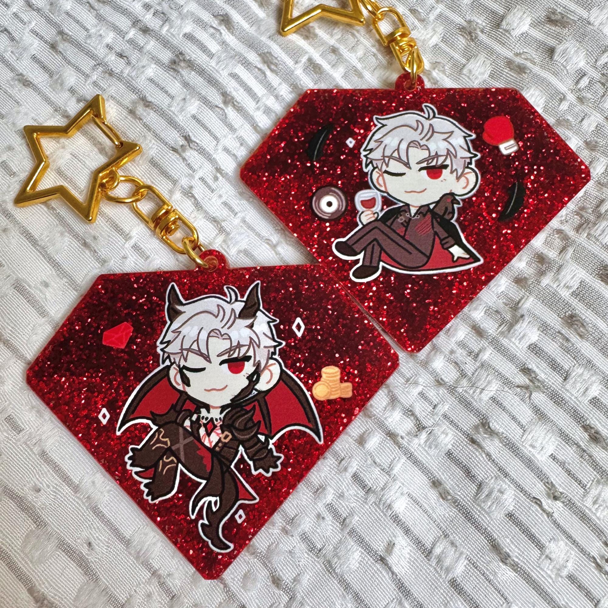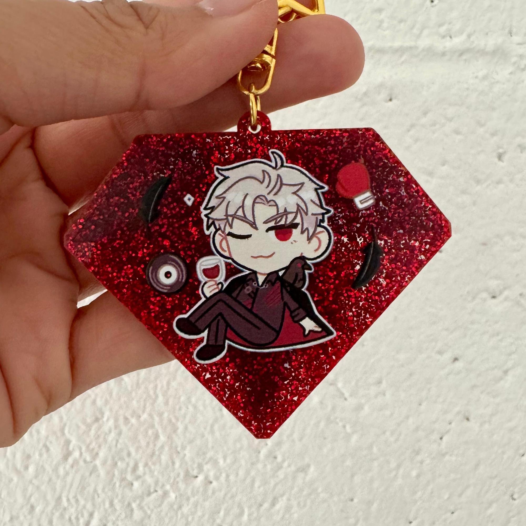 Glittery Sylus LADS keychain! One side features current timeline Sylus and his myth version is on the other.